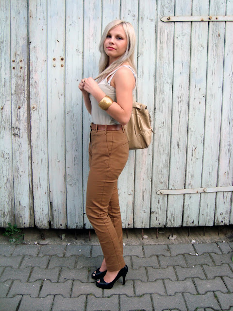 Spodnie to zdecydowanie jeden z najmniej lubianych przeze mnie elementów garderoby. Zwykle są za długie albo zbyt szerokie w pasie. Kupowanie spodni powoduje, że mnie boli głowa. Było dla mnie bardzo miłym zaskoczeniem, kiedy znalazłam te spodnie na przecenie w mango. Są bardzo wygodne i świetnie uszyte. Czegoś takiego szukałam. Zestaw jest bardzo minimalistyczny, więcej mu nie potrzeba :)